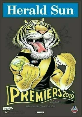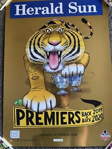 Protected behind 2 mm thick clear glass and ready to hang, without a mat or a border. Cheer your team through the finals with the herald sun's free glossy premiership years posters, featuring team mascot art and your club's history of premiership cups by our cartoonist 'macca'. Shop6 401 st kilda rd: Mark knight's tiger premiership poster for 2019. Premiership posters sell for $3 each and all proceeds raised are donated to the good friday appeal for the royal children's hospital.
